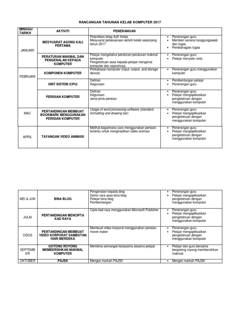 Cadangan Aktiviti Kelab Komputer 2020 Pdfcoffee Com