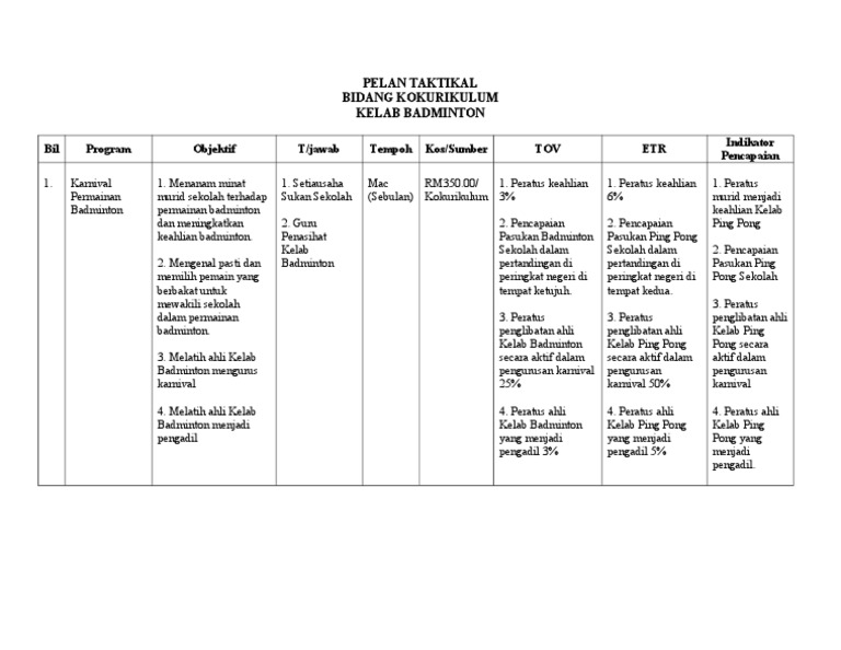 Pelan Taktikal Kelab Badminton Pdf