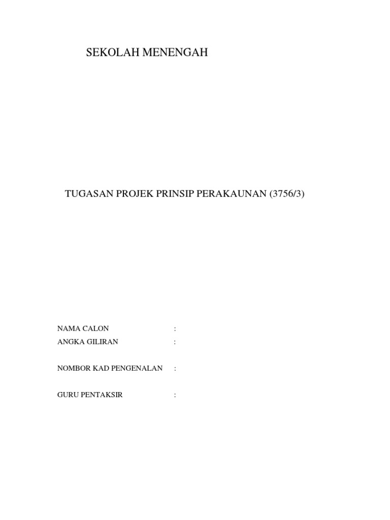 Tahun 2011 merupakan tahun pertama para pelajar akan menduduki peperiksaaan SPM bagi mata pelajaran Prinsip Perakaunan menggunakan sukatan terbaru dengan 3 kertas iaitu. Prinsip Perakaunan 2948 Perakuan Calon T entang Ketulenan. Muat Turun borang perakuan kutulenan tugasan.